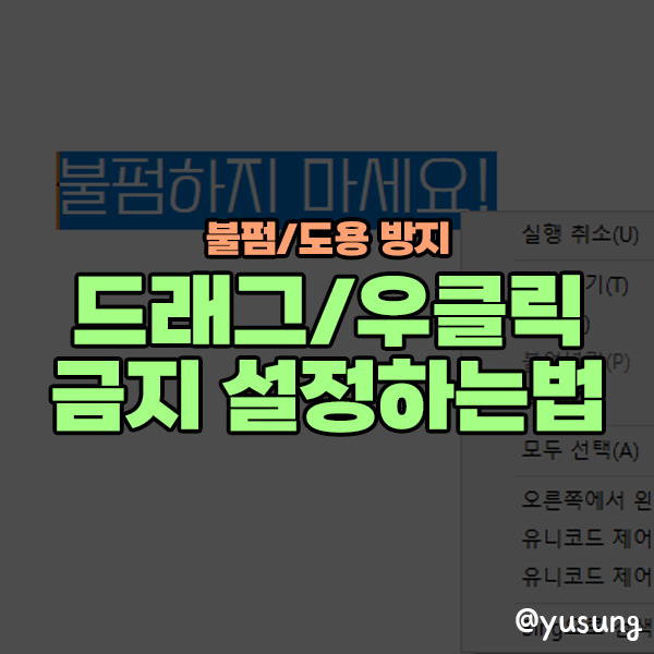 이번 글에서는 무단 도용을 방지하기 위한 마우스 드래그 및 우클릭을 금지시켜 여러분들의 글을 보호하는 방법을 알아보겠습니다.